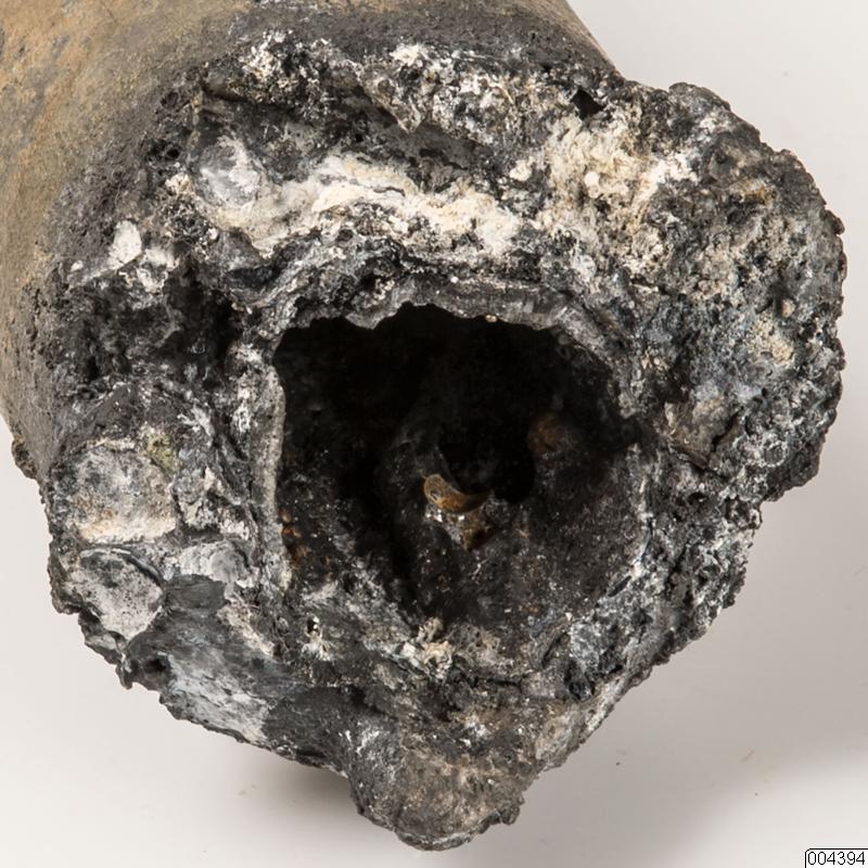Bomb. Rester av bomber fällda över Pajala den 21:a februari 1940. Fragment bestående av splitter, rester av propeller mm. Termitbomb, försedd med en liten snurra, som säkrar tändröret under transport. Det står 246 på kroppen, 297 61 38 på kroppen nära snurran samt 11N16, XB3 och 1938 på ringen mellan kroppen och snurran. Antal delar: 6 st.