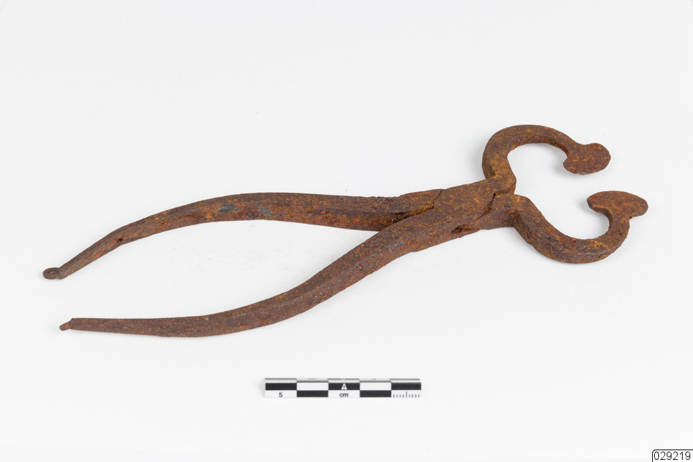 Sockertång med knipdelen utformad som två ovala skivor med eggarna mot varandra. Skänklarna är ovalformade.