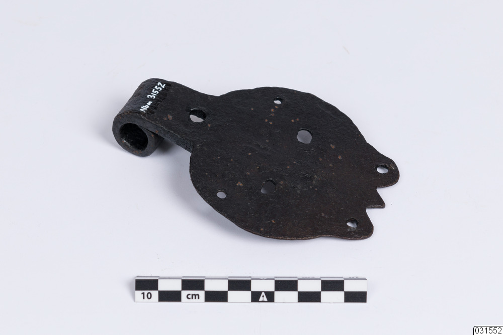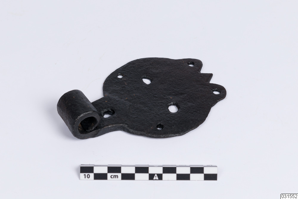 Plattgångjärn med sju hål för spikar.