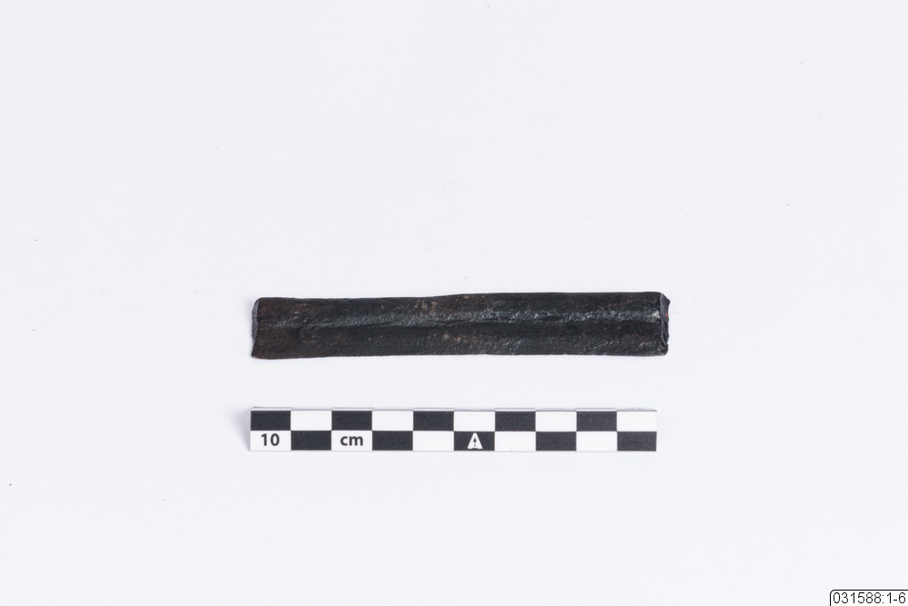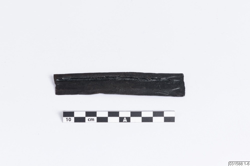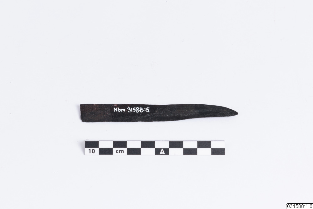 Sex stycken bitar av liestål. Enligt uppgift skulle dessa skydda människor från övernaturliga krafter. Bitarna är i olika storlekar och former.