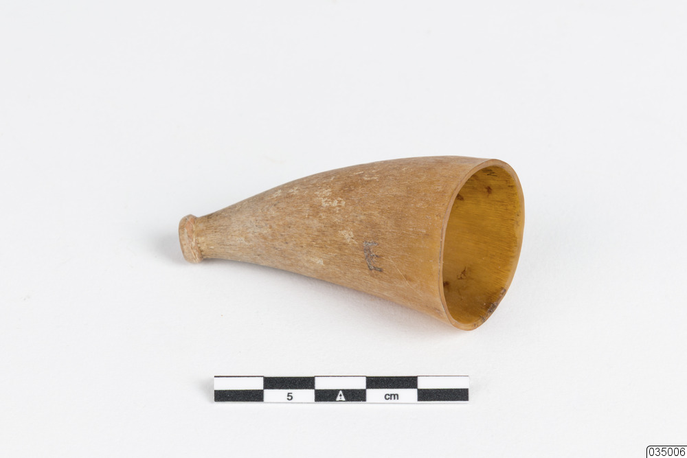 Kopphorn från etui innehållande 6 st kopphorn samt en rakkniv.