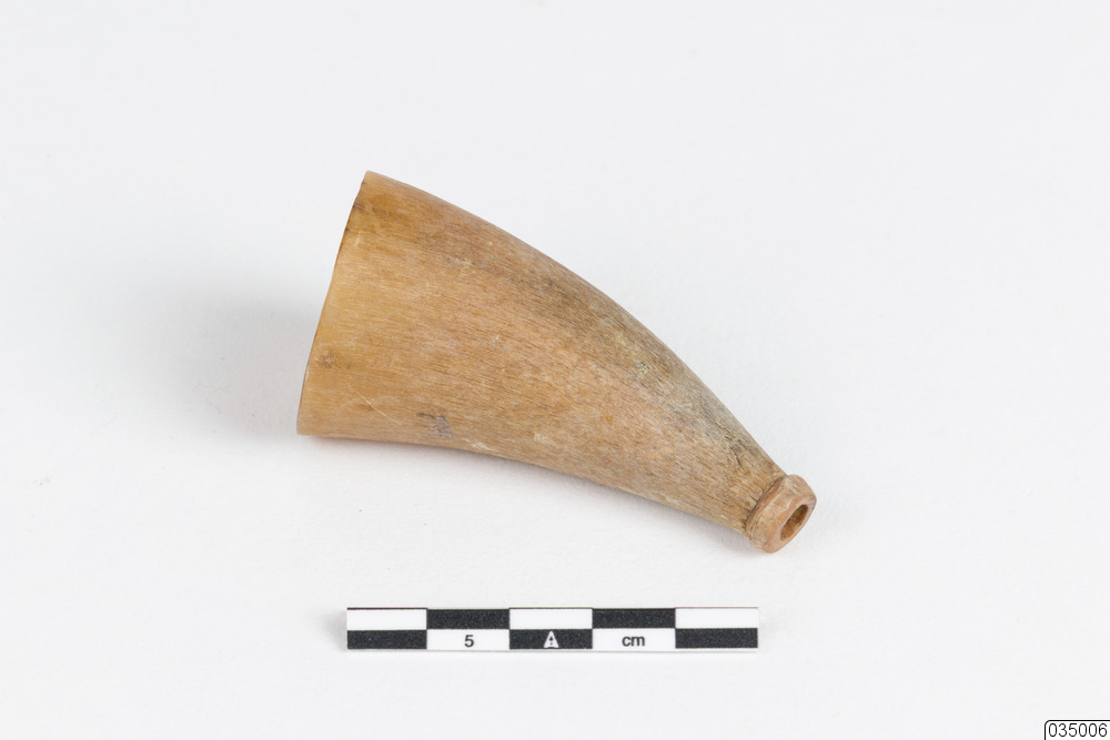 Etuiet med kopphornen har tillhört Hulda Eriksson (född Pettersson, 1883). Hulda arbetade som jordemor på Hindersön, hon var helt självlärd. Etuiet med kopphornen använde Hulda när hon koppade blod, och utförde behandlingar på sjuka personer i byn.