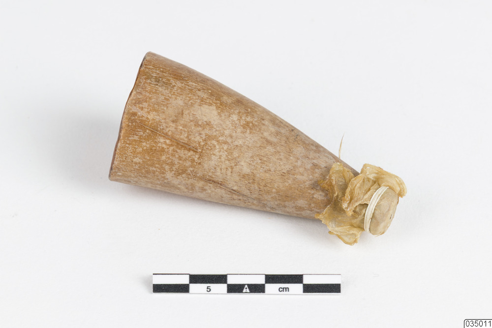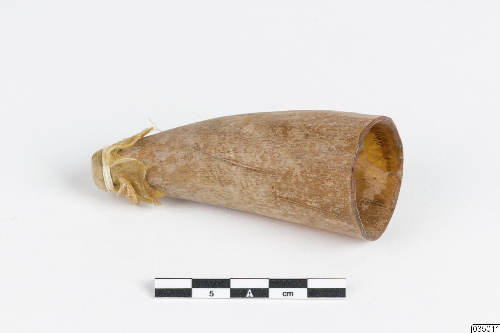 Etuiet med kopphornen har tillhört Hulda Eriksson (född Pettersson, 1883). Hulda arbetade som jordemor på Hindersön, hon var helt självlärd. Etuiet med kopphornen använde Hulda när hon koppade blod, och utförde behandlingar på sjuka personer i byn.