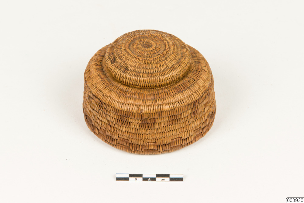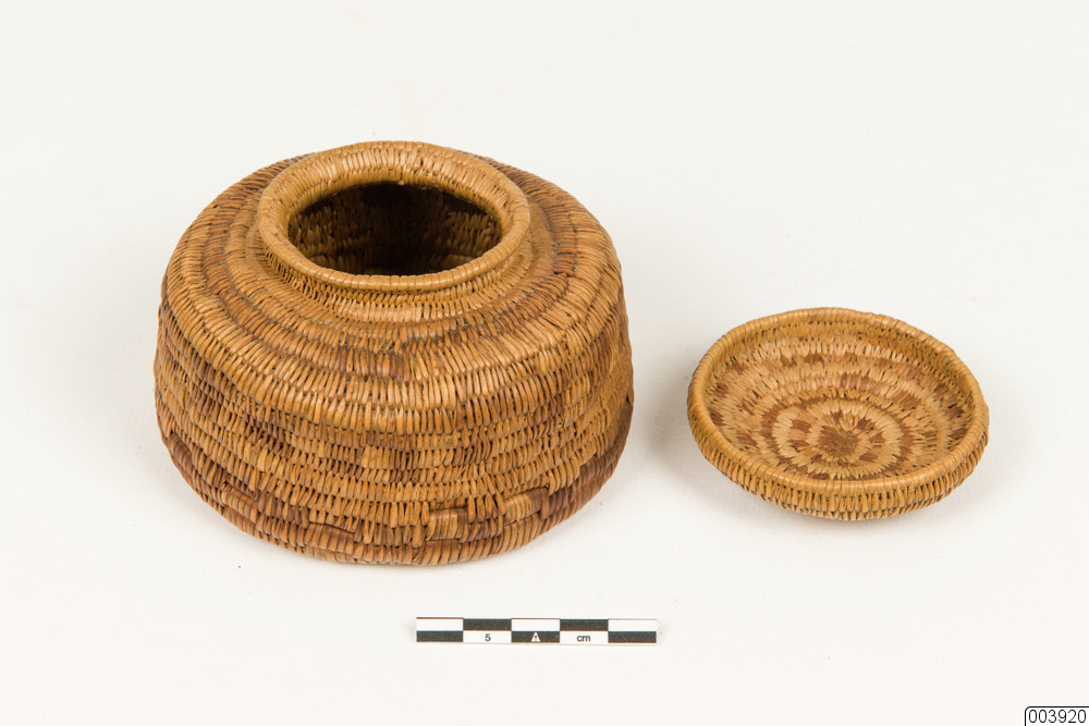 Rund rotkorg med lock som, enligt uppgift har använts som oblatask i Jukkasjärvi kyrka.
