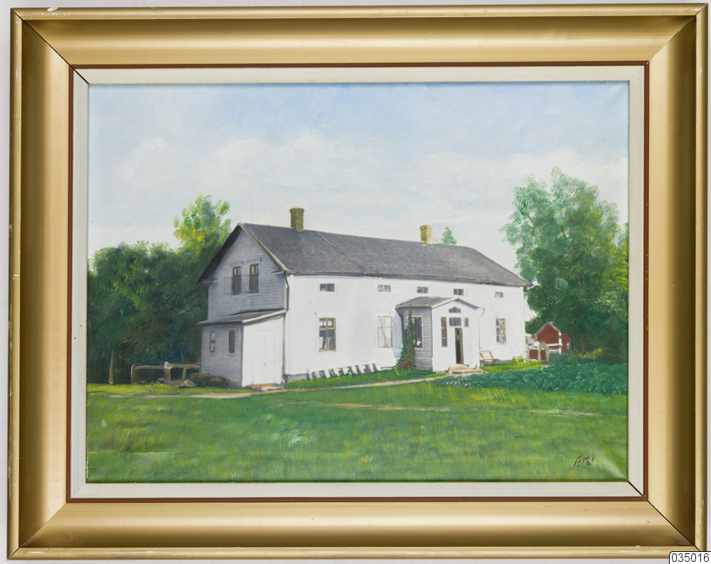 - Inramad oljemålning troligen föreställande Hietaniemi prästgård. Troligen målad efter ett fotografi eller ovanpå ett tryck. Signaturen F.K.I (?) syns i nedre högra hörnet. Spännramen (målningens baksida) är märkt 1954, 6/11. Slät ram målad i guld, rött och vitt.