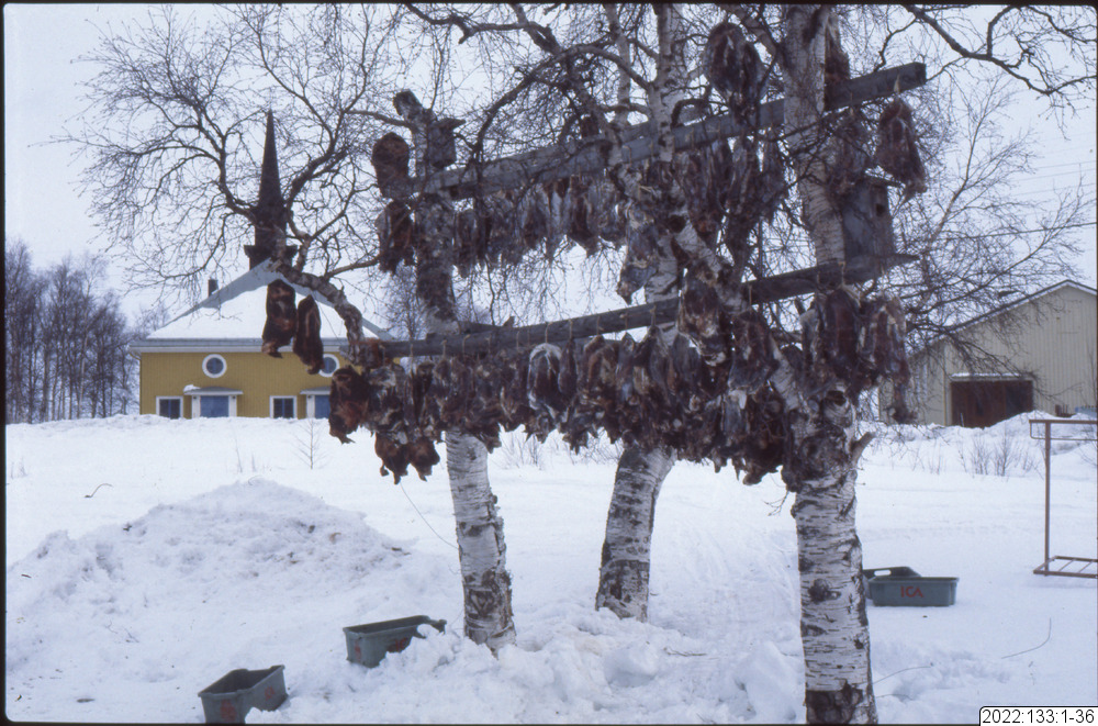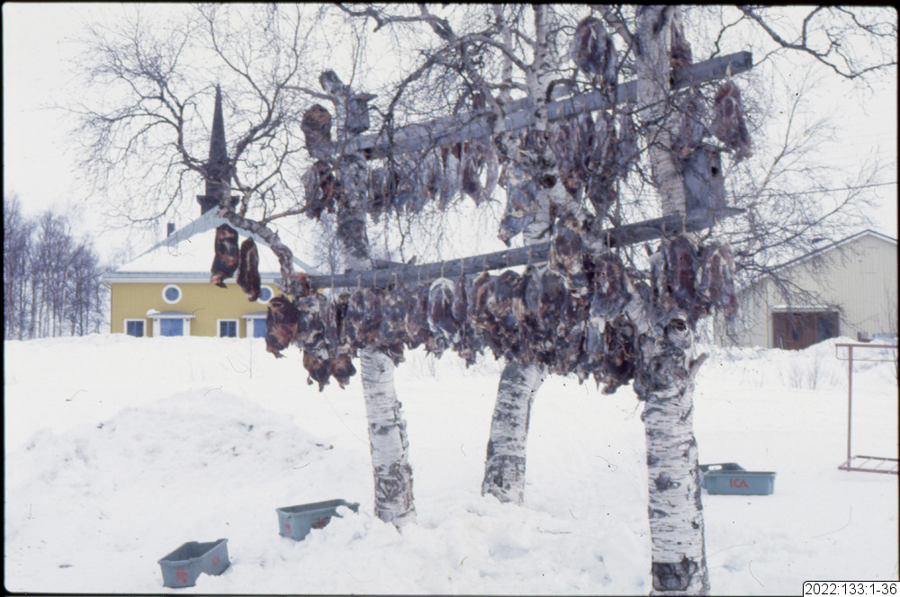 En av bilderna i serien (oftast den sista) visar det kuvertet som Bert Persson förvarade bilderna i. Texten på kuvertet är Berts beskrivning av innehållet. Noteringar i blyerts är skriven av museipersonal. ; Lannavaara Söderströms stensliperi februari 1985