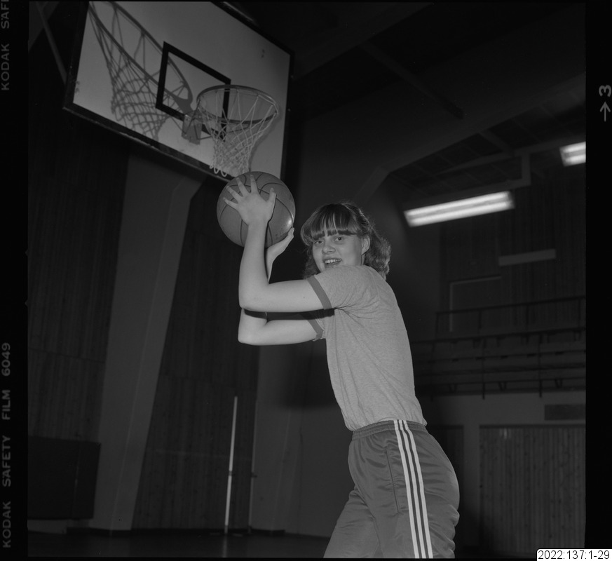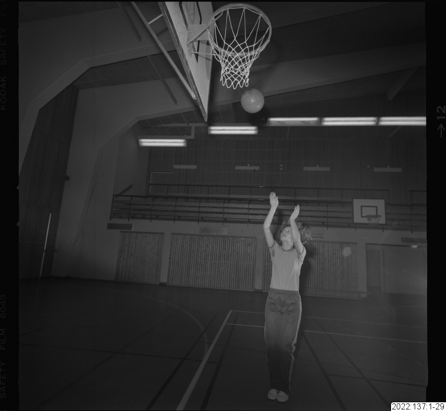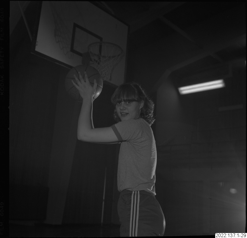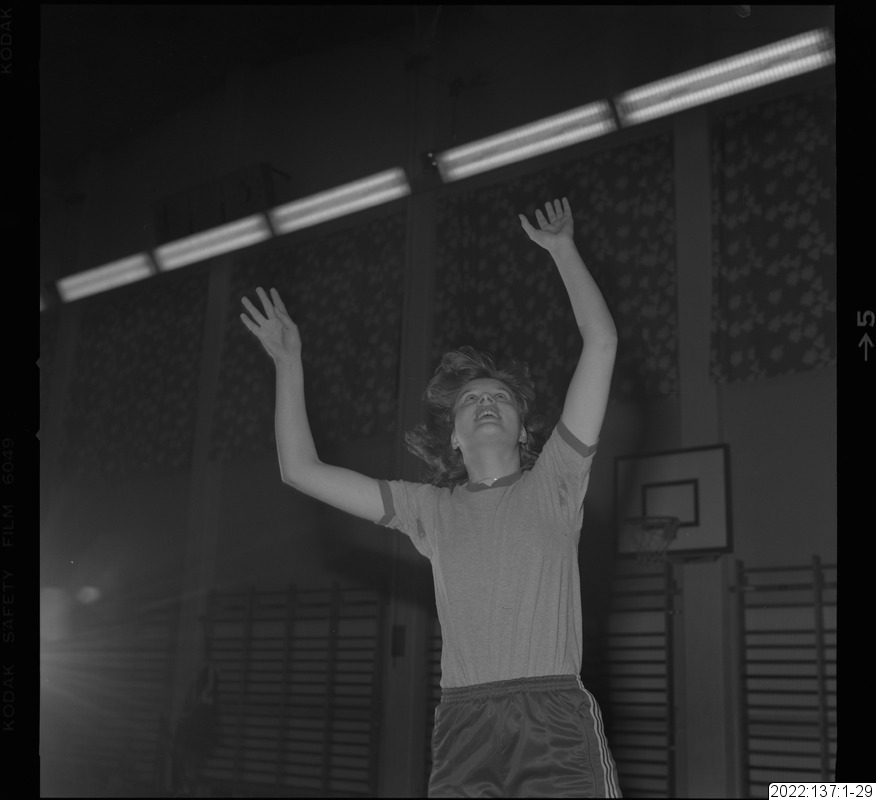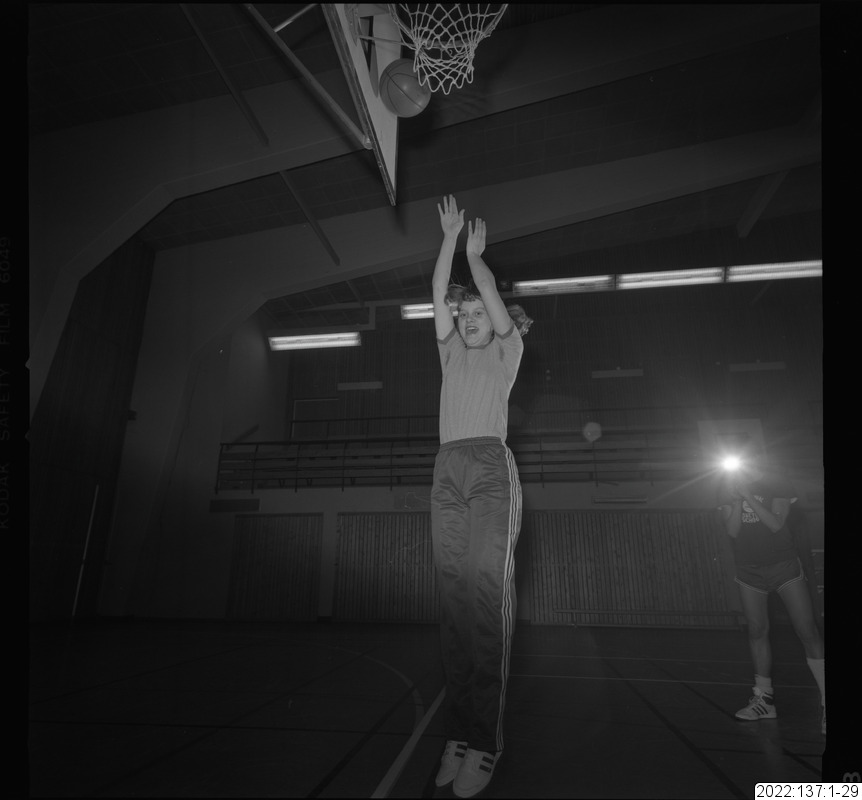 - Annelie Holmgren, Plannja basket, tränar skott på mål, mars 1981