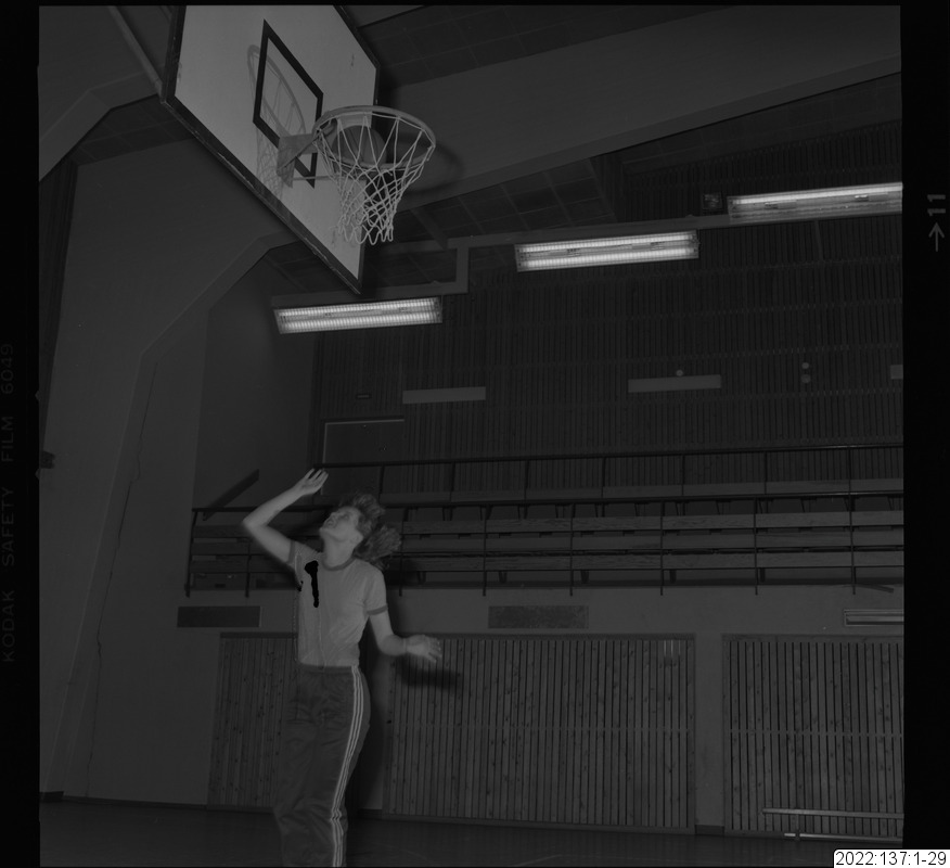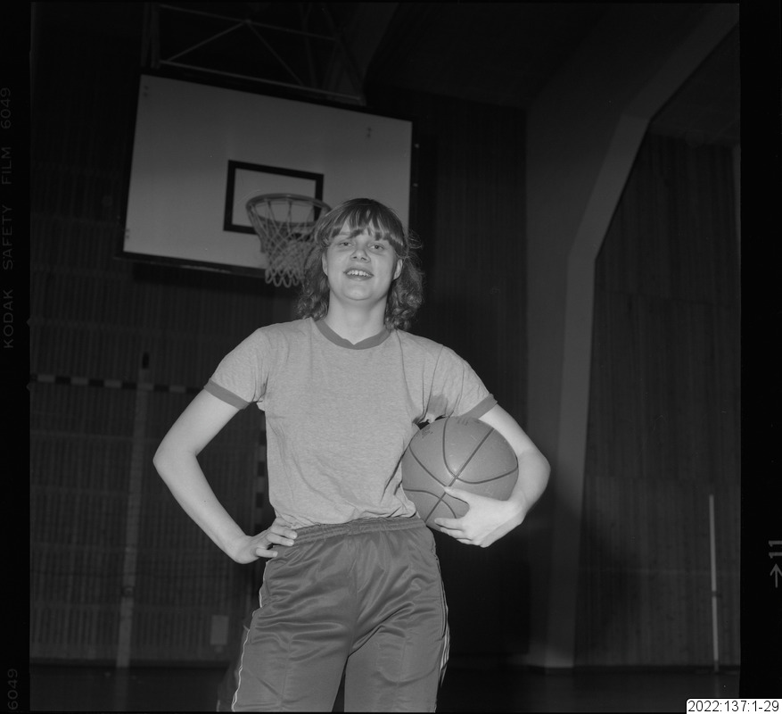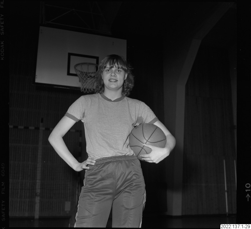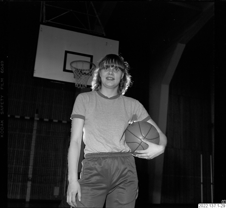 - Annelie Holmgren, Plannja basket, tränar skott på mål, mars 1981