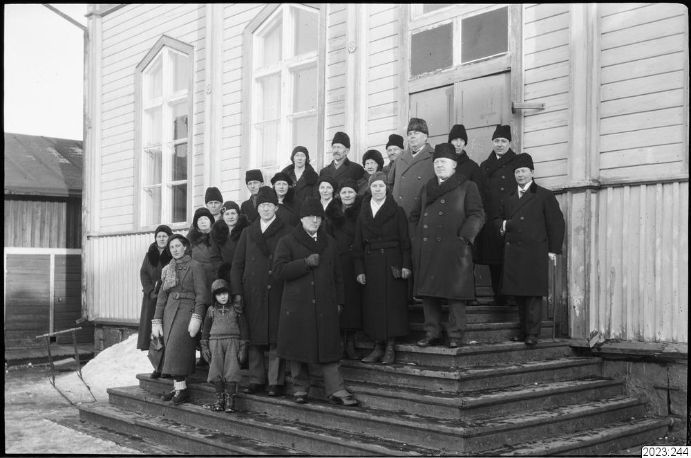 Gruppbild / förmodligen lärare / stående på gamla folkskolans trappa. Repslagargatan. Tid: 1925-1935.