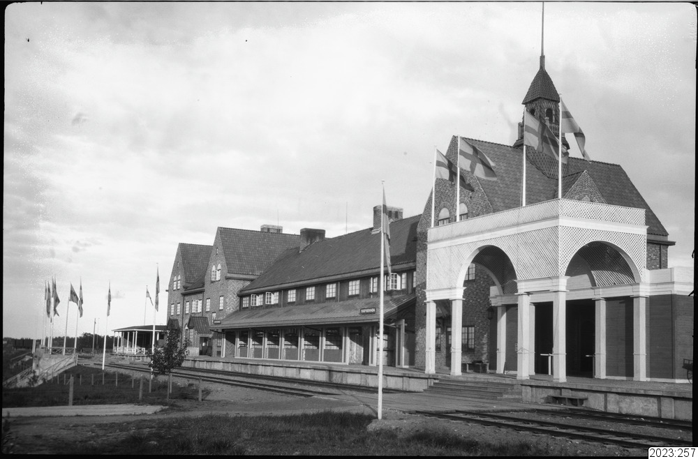 Haparanda järnvägsstation, byggår 1915, exteriörbild. Tid: 1920-tal.