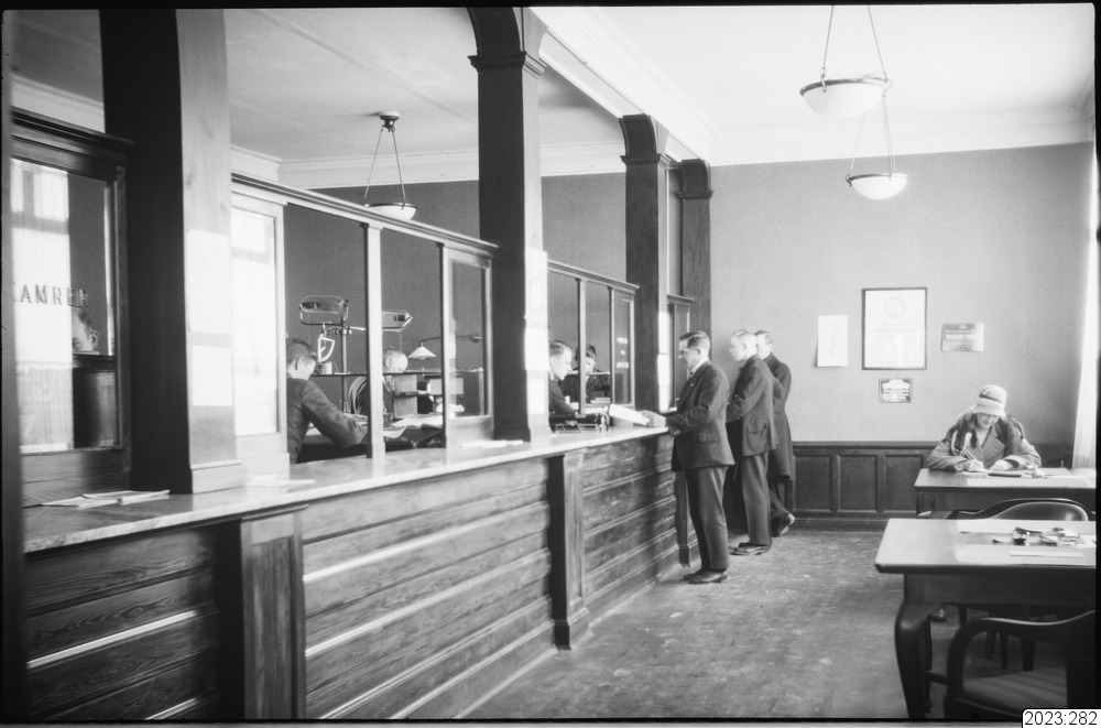 Svenska Handelsbankens lokaler i Haparanda. Interiörbild. Tid: 1925-1935.