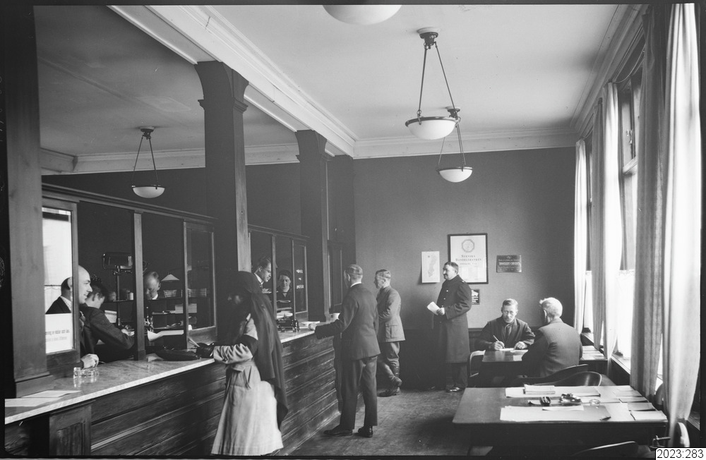 Svenska Handelsbankens lokaler i Haparanda. Interiörbild. Tid: 1925-1935.