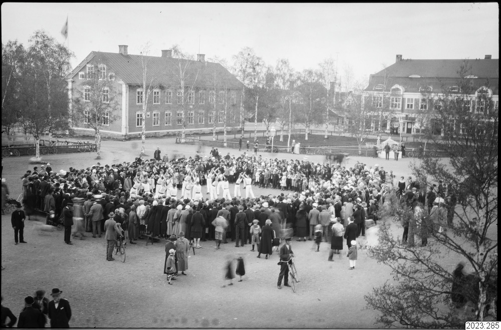 Firandet av 6:e junifestligheterna. Pojkar har gymnastikuppvisning på torget.