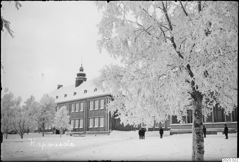 Seminariebyggnaden. "Haparanda" inskrivet på negativet - använts till vykortstillverkning. Tid: 1920-tal.