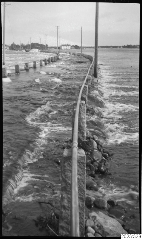 Isgång i Torneälv med översvämning som följd. Ismassorna drar sig nerför älven och sköljer över