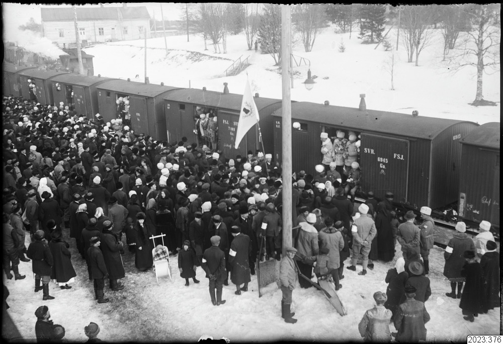 Järnvägsvagnar med frivilliga svenska soldater