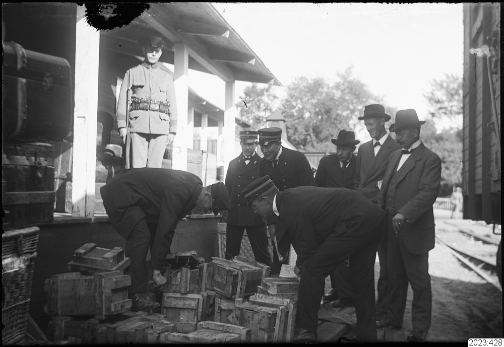 Tullvisitering av transitgods. Tid: 1914-1918.