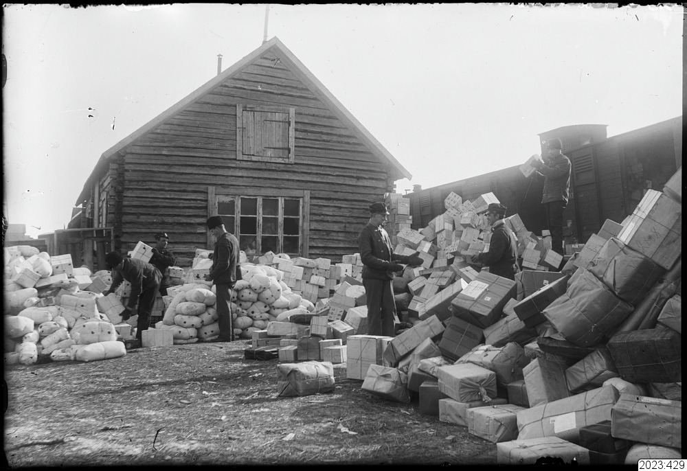 Tullvisitering av transitgods. Tid: 1914-1918.