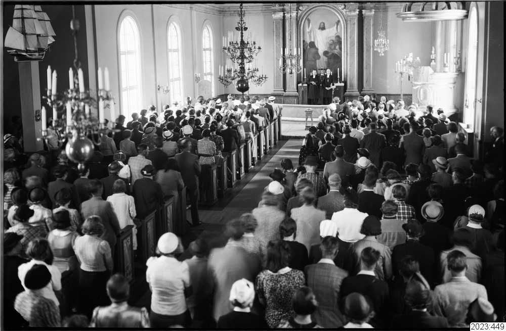 Gudstjänst pågår - 2 st. präster framme vid