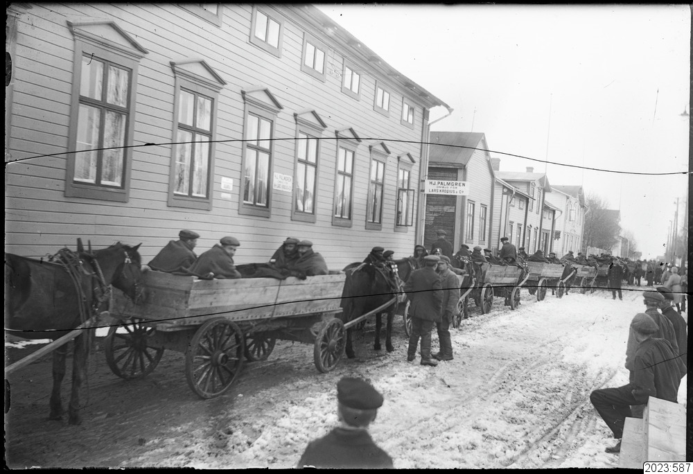 Invalidtransport med häst och kärra utefter Strandvägen". Tid: 1915-1918.