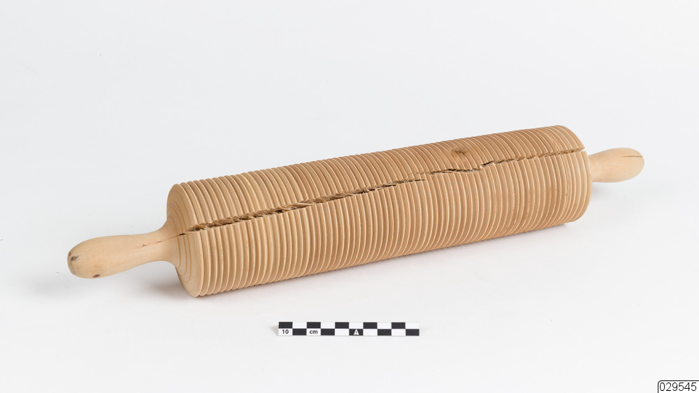 Obegagnad randkavel. En stor spricka längs hela kaveln. Ena handtaget är märkt med en tvåa.