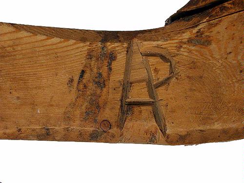 Skruvtving av björk. Den är märkt: "1847".
