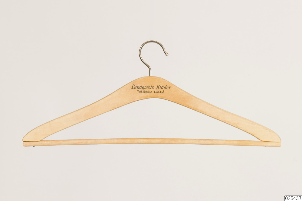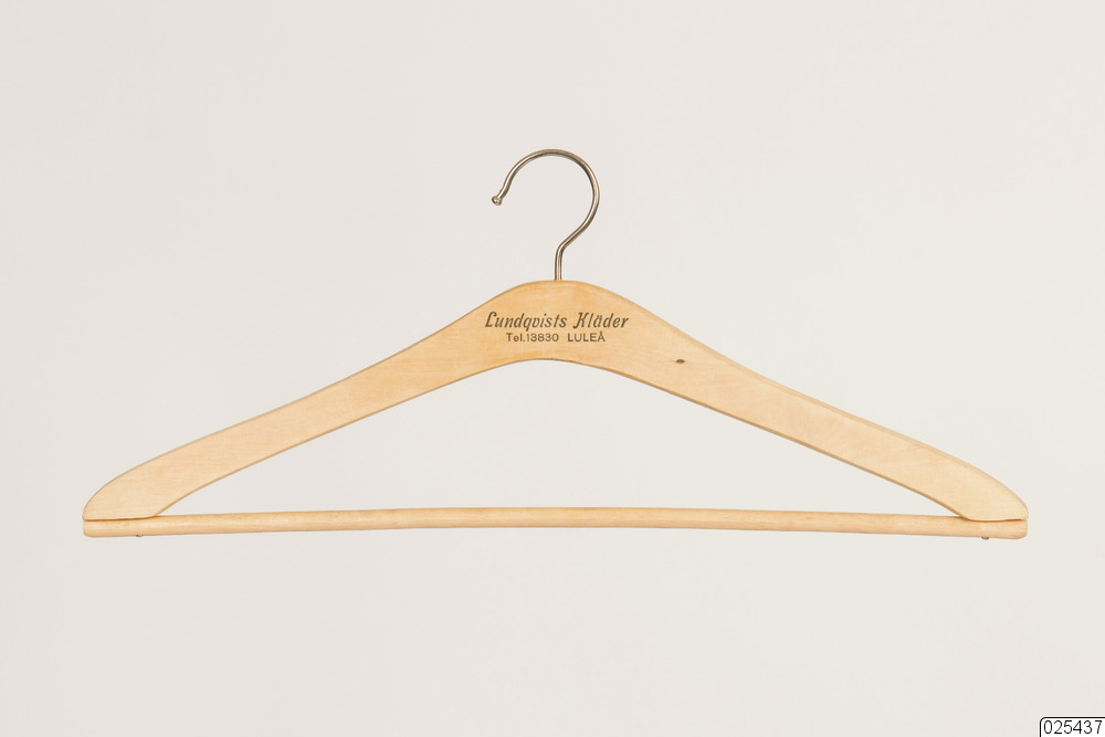 Trägalge med stång för byxor. Kommer från Lundqvists Kläder i Luleå.