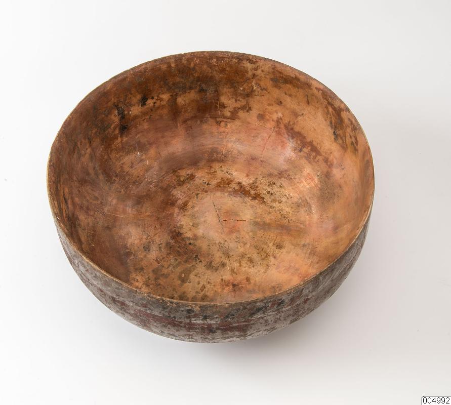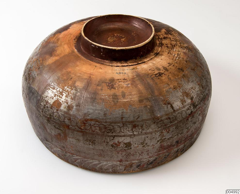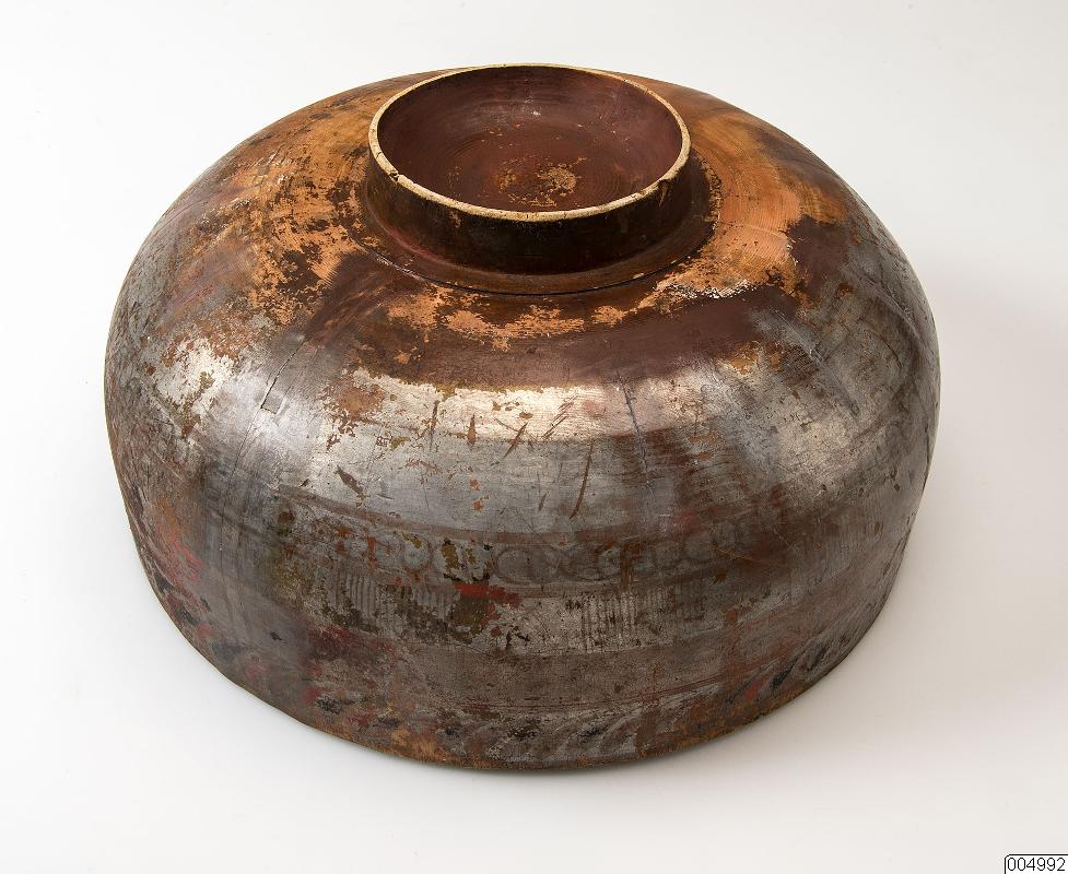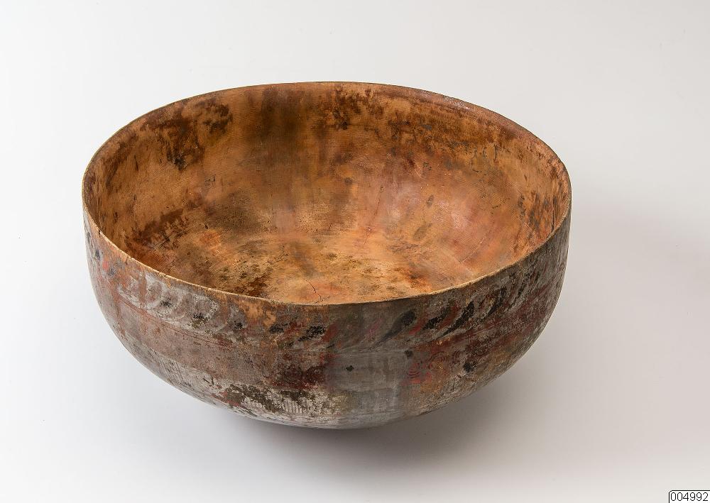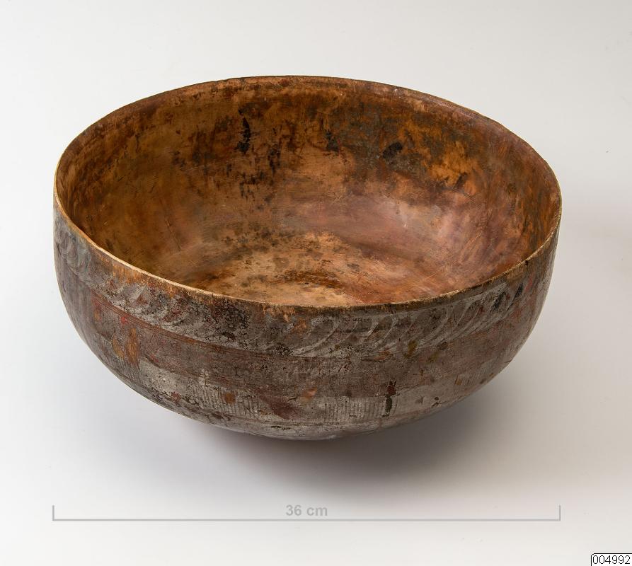 Filbunke. "Rysskål" av trä. Svarvad stor skål, målad både utanpå och inuti. Svarvad, rak fot, ca 2 cm hög och urgröpt.