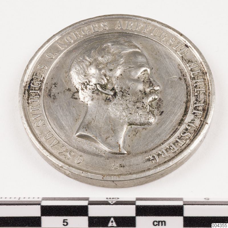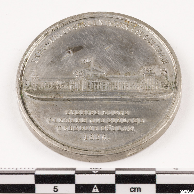 Minnespeng över industriutställningen i Stockholm 1866. Utförd av Lea Ahlbom.