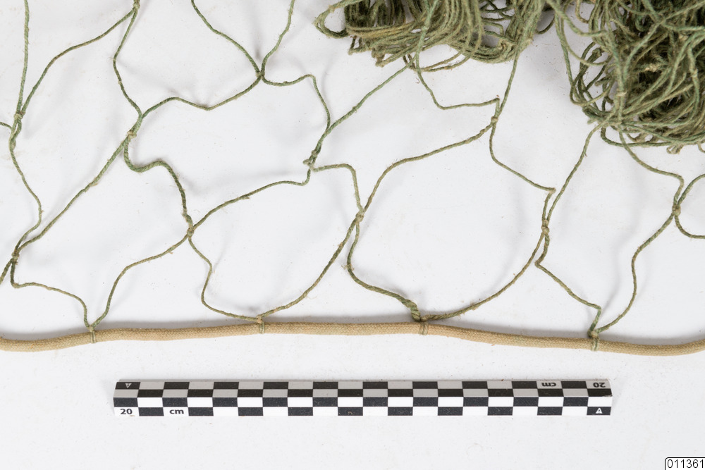 Laxnät bestående av handknutet grönt nät och mätsticka med varvantal 8 varv per aln samt sänkteln av bly inklätt i bomull. Flöten bestående av nävertillor och plast inklätt i bomull. Vattenfalls nr 311 på rund mässingsbricka. Antal 1+1.