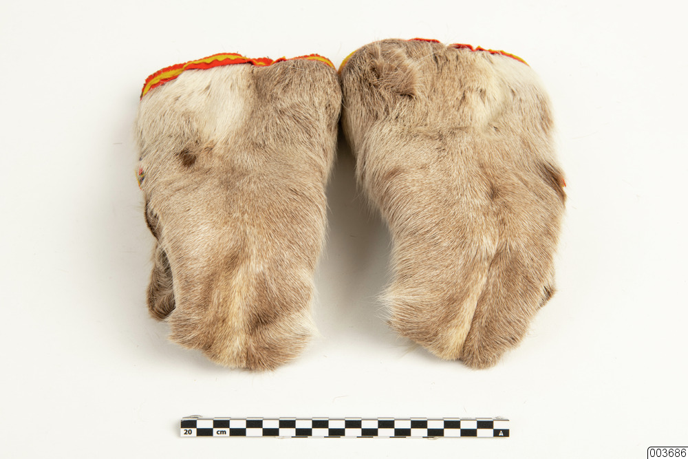 Handske. Ett par samiska handskar av renbälling för män. Antal 2 st.