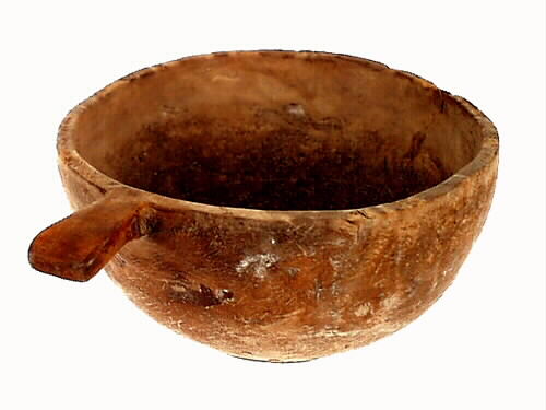 Skopa. Rund skopa i björk, med "grepe". Omålad.