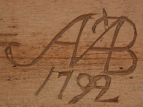 - Solvstock. Solvträ med 5 pinnar. Under träet ristat AAB med 1792 rakt under (det sista A och B har en gemensam stapel och A har ett kryss till vänster om toppen), samt ALB (bokstäverna sitter ihop med en gemensam stapel).