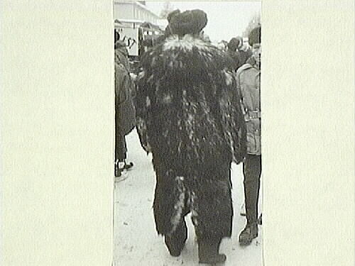 Vintermarknad i Jokkmokk. Man med stor päls.
