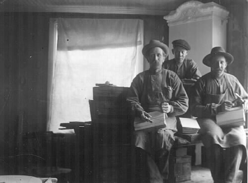 Murare i arbete på Klastorp.