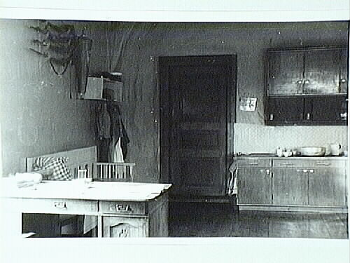 Interiör av Nuoksujärvi gamla pörte hos Hjalmar Wiss. Bilden föreställer kammaren före ombyggnaden och ingången till pörtet.