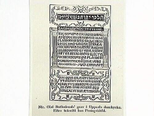 Ärkebiskop Nicolaus Olai Bothniensis grav i Uppsala domkyrka. Efter träsnitt hos Peringsköld.