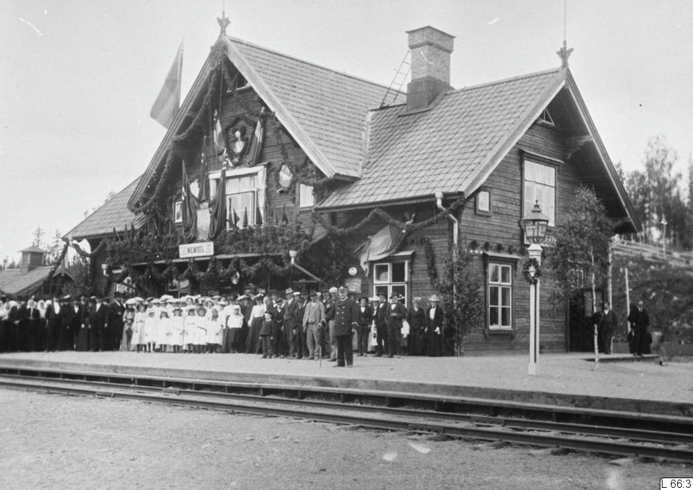 Dekorationen av Niemisels järnvägsstation vid invigningen den 4/8 1903.