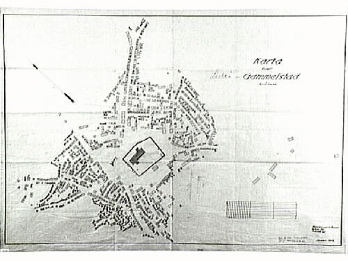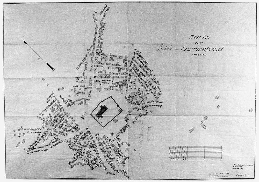 "Karta över Gammelstad invid Luleå." Bearbetad version av Bergners karta från 1817.