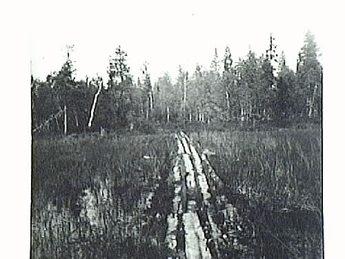 Vägen mellan Nuksujärvi och Junosuando, spänger över en myr. De lades 1928.