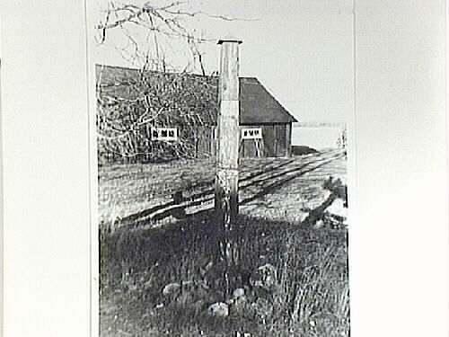 Milstolpe av trä. Text: ½ mil.