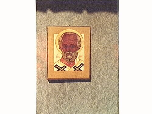 Salmi Koskinens utställning av ikoner på Norrbottens museum hösten 1976. "Den helige Nicolaus".