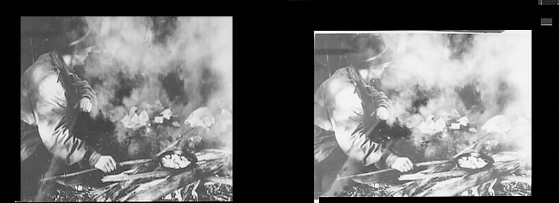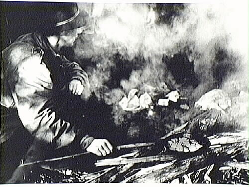 Skogsarbetare tillagar sin mat över öppen eld.