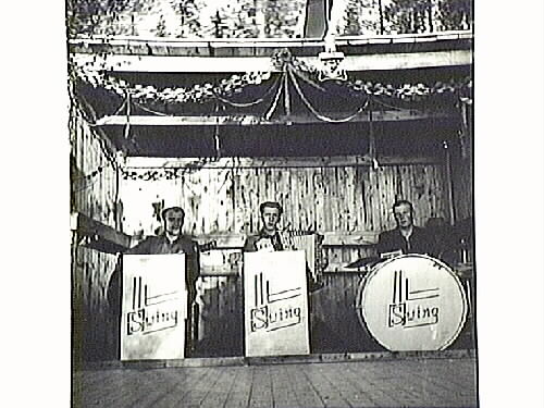 Midsommarfest på festplatsen vid Arvidsjaursjön. Musikanterna "Swing" spelade i den ljusa natten.