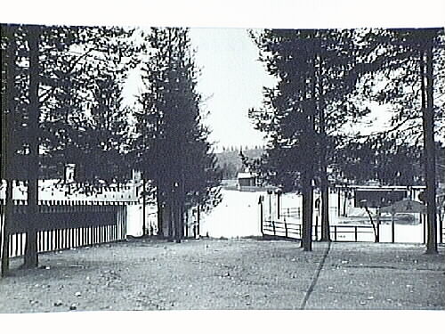 Nyborgstjärn. Dansbana och stånd, byggd 1913 av Arvidsjaurs Arbetarkommun. Riven 1957