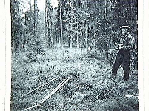 Viktor Granberg vid en fångstgrop.