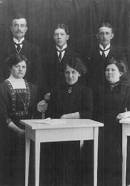 - Från höger: Karl Lindgren med Hulda Lenman, Johan Åhlund med Selma Lundgren och Andreas Marklund med Judit Lundberg. Dessa tre par förlovade sig samtidigt och troligen är bilden från detta tillfälle.