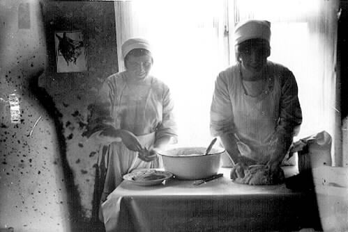 Två kvinnor bakar.