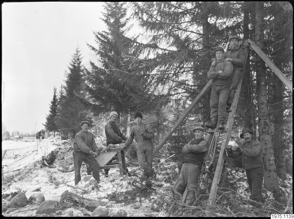 Grävning vid Mårtisbäcken före 1924. Personer från vänster: 1. Paul Franzén, 2. Okänd, 3. Markus Engström, 4. Bertil Lundström, 5., 6. och 7. är okända.