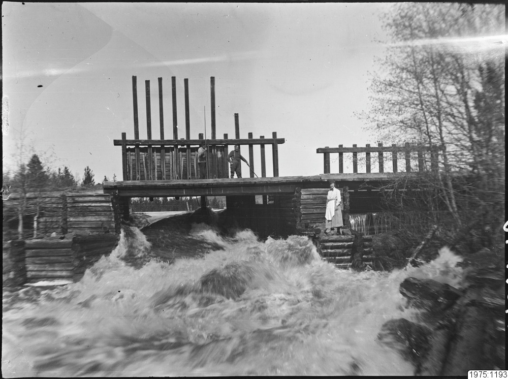 Älvsbyn, Stockfors. Damm i Stockforsälven, 1923.